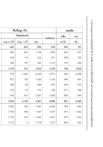 พื้นที่ปลูก (ไร) ใหผลผลิตแลว อายุ > 12 ป 453 423 114 197 734 1,560 154 38 15 357 2,124 155 189 287 5