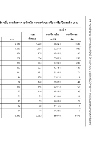 ผลผลิตเฉลี่ย กก./ไร 552.24 622.19 454.55 536.23 549.60 477.81 503.55 318.18 536.59 530.43 454.55 433.96 478.26 411.76 142.86 550.40