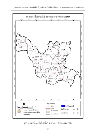 รายงานการสํารวจและคาดการณผลผลิตลิ้นจี่ ปการผลิต 2549 โดยใชเทคโนโลยีการสํารวจระยะไกลและระบบสารสนเทศภูมิศาสตร รูปที่ 16 แผนที่แสดงพื้นที่ปลูกลิ้นจี่ จังหวัดอุดรธานี ปการผลิต 2549 66 66