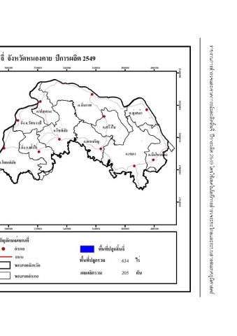 รายงานการสํารวจและคาดการณผลผลิตลิ้นจี่ ปการผลิต 2549 โดยใชเทคโนโลยีการสํารวจระยะไกลและระบบสารสนเทศภูมิศาสตร รูปที่ 18 แผนที่แสดงพื้นที่ปลูกลิ้นจี่ จังหวัดหนองคาย ปการผลิต 2549 72 72