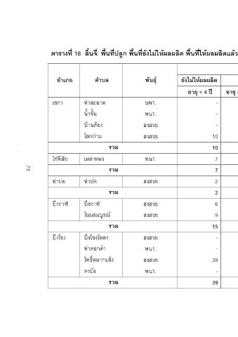 ยังไมใหผลผลิต ใหผลผลิตแลว รวม เฉลี่ย รวม ทั้งหมด ตัน กก./ไร รวม อายุ > 12 ป อายุ 4-12 ป อายุ < 4 ป 3 542.00 5 5 - 5 - 3 3 - 3 - 2 511.00 5 524.00 7 7 - 7 - - - 10 - -