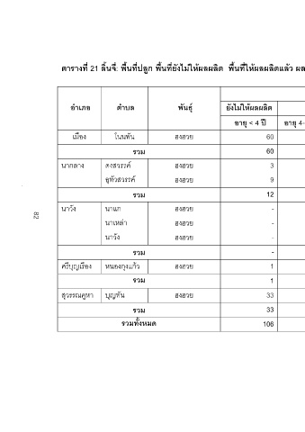 ยังไมใหผลผลิต อายุ < 4 ป 60 60 3 9 12 - - - - 1 1 33 33 106