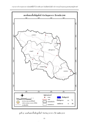 รายงานการสํารวจและคาดการณผลผลิตลิ้นจี่ ปการผลิต 2549 โดยใชเทคโนโลยีการสํารวจระยะไกลและระบบสารสนเทศภูมิศาสตร รูปที่ 22 แผนที่แสดงพื้นที่ปลูกลิ้นจี่ จังหวัดมุกดาหาร ปการผลิต 2549 83 83
