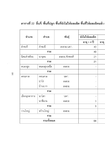 ตารางที่ 22 ลิ้นจี่: พื้นที่ปลูก พื้นที่ยังไมใหผลผลิต พื้นที่ใหผลผลิตแลว ผลผลิตเฉลี่ย ผลผลิตรวมรายตําบล จังหวัดมุกดาหาร ปการผลิต 2549