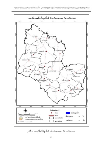 รายงานการสํารวจและคาดการณผลผลิตลิ้นจี่ ปการผลิต 2549 โดยใชเทคโนโลยีการสํารวจระยะไกลและระบบสารสนเทศภูมิศาสตร รูปที่ 24 แผนที่พื้นที่ปลูกลิ้นจี่ จังหวัดสกลนคร ปการผลิต 2549 87 87