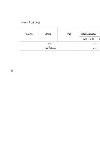 ยังไมใหผลผลิต ใหผลผลิตแลว รวม เฉลี่ย รวม ทั้งหมด ตัน กก./ไร รวม อายุ > 12 ป อายุ 4-12 ป อายุ < 4 ป 67 40 1 39 27 21 525.00 119 77 3 74 42 35 454.55