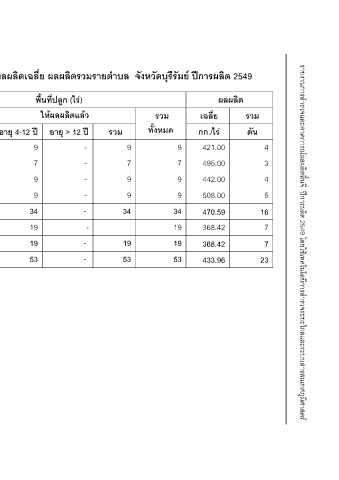 พื้นที่ปลูก (ไร) ใหผลผลิตแลว อายุ > 12 ป - - - - - - - -