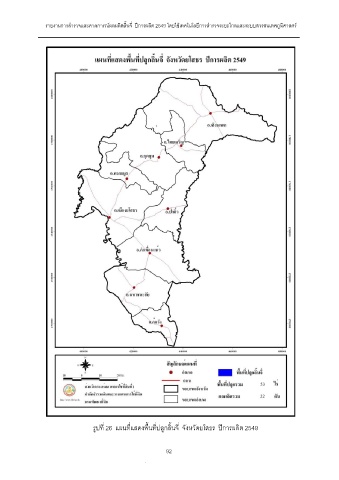 รายงานการสํารวจและคาดการณผลผลิตลิ้นจี่ ปการผลิต 2549 โดยใชเทคโนโลยีการสํารวจระยะไกลและระบบสารสนเทศภูมิศาสตร รูปที่ 26 แผนที่แสดงพื้นที่ปลูกลิ้นจี่ จังหวัดยโสธร ปการผลิต 2549 92 92