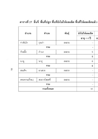 ยังไมใหผลผลิต ใหผลผลิตแลว รวม เฉลี่ย รวมทั้งหมด ตัน กก./ไร รวม อายุ > 12 ป อายุ 4-12 ป อายุ < 4 ป 3 500.00 6 6 - 6 - 6 6 - 6 - 3 500.00 2 400.00 10 5 - 5 5 2 400.00 10