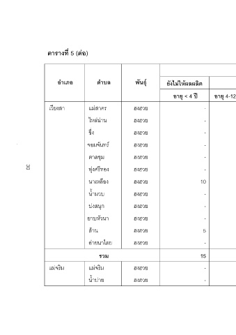 ยังไมใหผลผลิต อายุ < 4 ป - - - - - - 10 - - - 5 - 15 - -