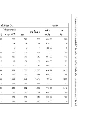 พื้นที่ปลูก (ไร) ใหผลผลิตแลว อายุ > 12 ป 399 28 7 128 187 49 72 - 1,789 131 1,505 122 - 1,758 61 213 - 164