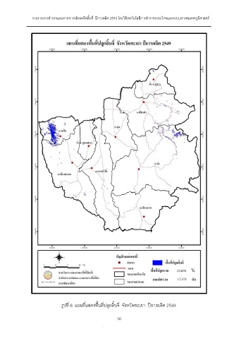 รายงานการสํารวจและคาดการณผลผลิตลิ้นจี่ ปการผลิต 2549 โดยใชเทคโนโลยีการสํารวจระยะไกลและระบบสารสนเทศภูมิศาสตร รูปที่ 6 แผนที่แสดงพื้นที่ปลูกลิ้นจี่ จังหวัดพะเยา ปการผลิต 2549 36