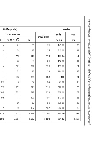 พื้นที่ปลูก (ไร) ใหผลผลิตแลว อายุ > 12 ป 75 35 110 26 329 33 388 8 239 321 14 60 80 722 2,084