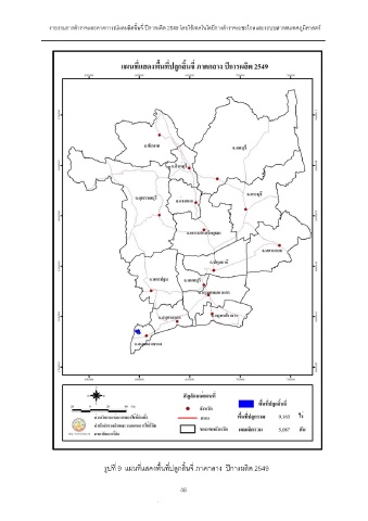 รายงานการสํารวจและคาดการณผลผลิตลิ้นจี่ ปการผลิต 2549 โดยใชเทคโนโลยีการสํารวจระยะไกลและระบบสารสนเทศภูมิศาสตร รูปที่ 9 แผนที่แสดงพื้นที่ปลูกลิ้นจี่ ภาคกลาง ปการผลิต 2549 46