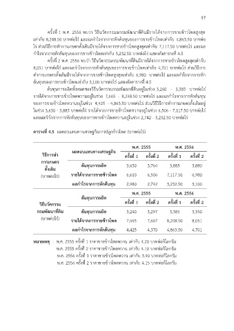 ตารางที่ 4.5 ผลตอบแทนทางเศรษฐกิจการปลูกข้าวโพด (บาทต่อไร่)
