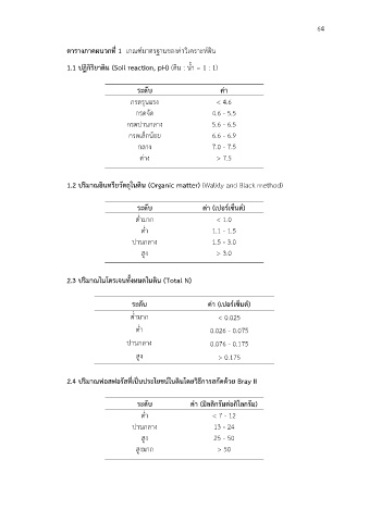 ตารางภาคผนวกที่ 1 เกณฑ์มาตรฐานของค่าวิเคราะห์ดิน