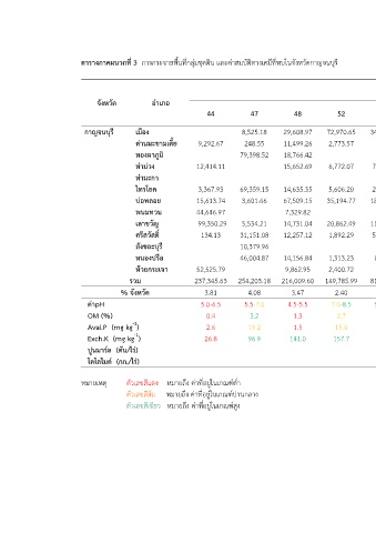 ตารางภาคผนวกที่ 3 การกระจายพื้นที่กลุ่มชุดดิน และค่าสมบัติทางเคมีที่พบในจังหวัดกาญจนบุรี