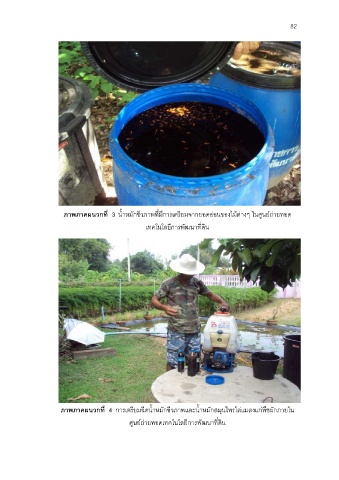 82 ภาพภาคผนวกที่ 3 น้่าหมักชีวภาพที่มีการเตรียมจากยอดอ่อนของไม้ต่างๆ ในศูนย์ถ่ายทอด เทคโนโลยีการพัฒนาที่ดิน ภาพภาคผนวกที่ 4 การเตรียมฉีดน้่าหมักชีวภาพและน้่าหมักสมุนไพรไล่แมลงแก่พืชผักภายใน ศูนย์ถ่ายทอดเทคโนโลยีการพัฒนาที่ดิน