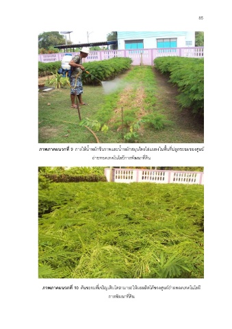 85 ภาพภาคผนวกที่ 9 การให้น้่าหมักชีวภาพและน้่าหมักสมุนไพรไล่แมลงในพื้นที่ปลูกชะอมของศูนย์ ถ่ายทอดเทคโนโลยีการพัฒนาที่ดิน ภาพภาคผนวกที่ 10 ต้นชะอมที่เจริญเติบโตสามารถให้ผลผลิตได้ของศูนย์ถ่ายทอดเทคโนโลยี การพัฒนาที่ดิน