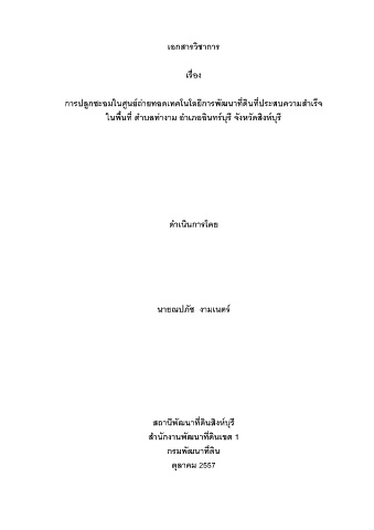 เอกสารวิชาการ เรื่อง การปลูกชะอมในศูนย์ถ่ายทอดเทคโนโลยีการพัฒนาที่ดินที่ประสบความส าเร็จ ในพื้นที่ ต าบลท่างาม อ าเภออินทร์บุรี จังหวัดสิงห์บุรี ด าเนินการโดย นายณปภัช งามเนตร์ สถานีพัฒนาที่ดินสิงห์บุรี ส านักงานพัฒนาที่ดินเขต 1 กรมพัฒนาที่ดิน ตุลาคม 2557