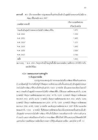 ตารางที่ 4.3 ปริมาณผลผลิตการปลูกชะอมตั้งแต่ก่อนเริ่มเข้าเป็นศูนย์ถ่ายทอดเทคโนโลยีการ