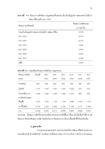 ตารางที่ 4.4 ต้นทุนการผลิตในการปลูกชะอมตั้งแต่ก่อนเริ่มเข้าเป็นศูนย์ถ่ายทอดเทคโนโลยีการ