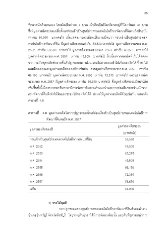 เท่ากับ 64,030 บาทต่อไร่ เมื่อแสดงรายละเอียดเป็นรายปีพบว่า ก่อนเข้าเป็นศูนย์ถ่ายทอด