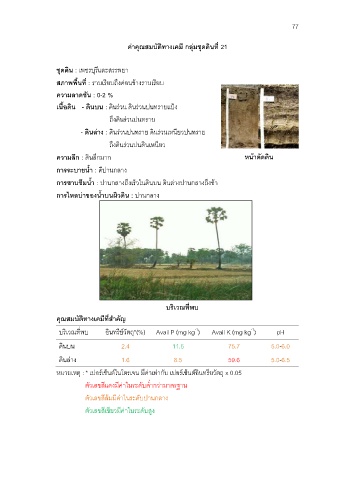 ค่าคุณสมบัติทางเคมี กลุ่มชุดดินที่ 21