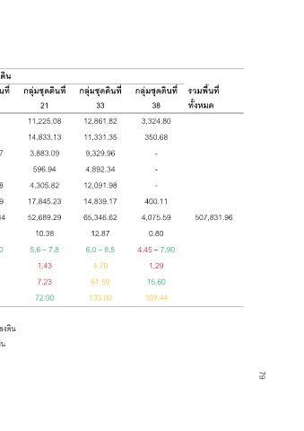 ตัวเลขสีเขียว หมายถึง ค่าที่สูงกว่ามาตรฐานของสมบัติทางเคมีของดิน 79
