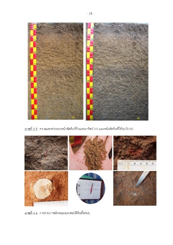 - 24 - ภาพที่ 4-5 ความแตกต่างของหน้าตัดดินที่รับแสงอาทิตย์ (ก) และหน้าตัดดินที่ใช้ร่มบัง (ข) ภาพที่ 4-6 การถ่ายภาพลักษณะและสมบัติดินที่เด่นๆ