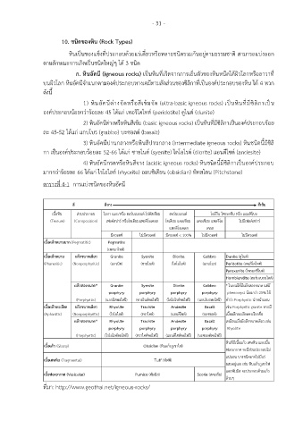 ตารางที่ 4-1 การแบ่งชนิดของหินอัคนี