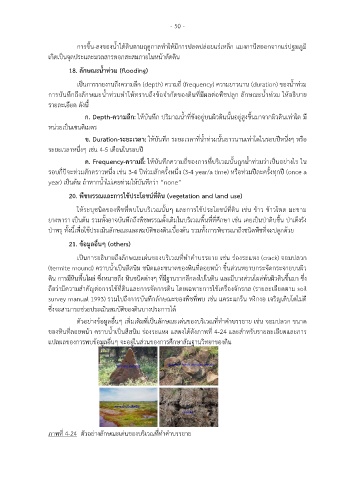 การบันทึกถึงลักษณะน้ําท่วมทําให้ทราบถึงข้อจํากัดของดินที่มีผลต่อพืชปลูก ลักษณะน้ําท่วม ให้อธิบาย