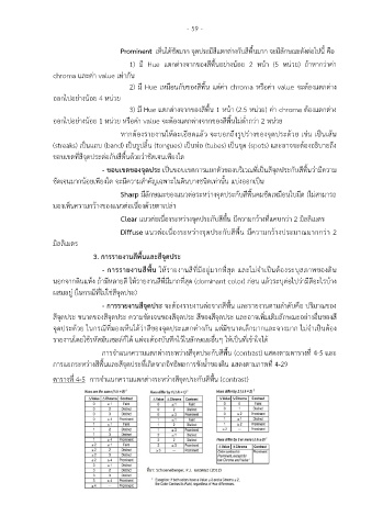 การจําแนกความแตกต่างระหว่างสีจุดประกับสีพื้น (contrast) แสดงตามตารางที่ 4-5 และ