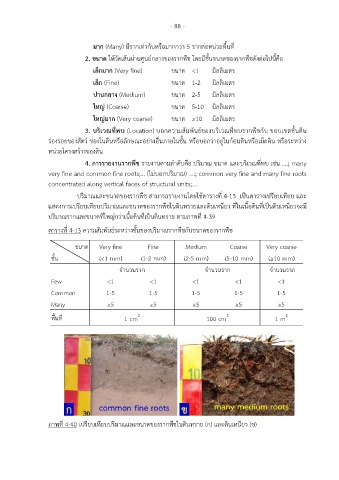 very fine and common fine roots;… (ไม่บอกปริมาณ) ....; common very fine and many fine roots