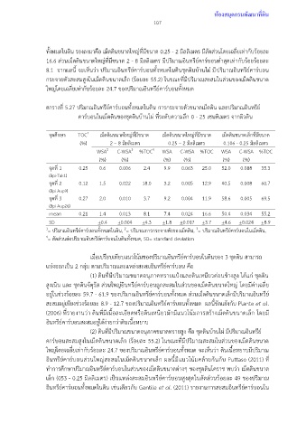 ตารางที่ 5.27 ปริมาณอินทรีย์คาร์บอนทั้งหมดในดิน การกระจายตัวขนาดเม็ดดิน และปริมาณอินทรีย์
