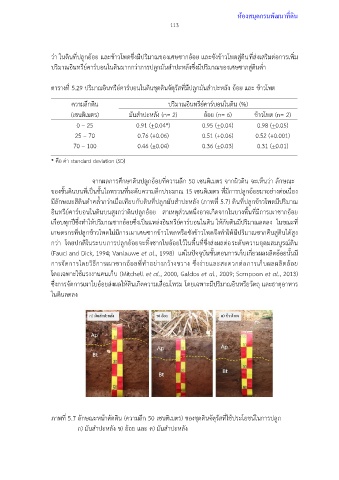 มีลักษณะสีดินด าคล้ ากว่าเมื่อเทียบกับดินที่ปลูกมันส าปะหลัง (ภาพที่ 5.7) ดินที่ปลูกข้าวโพดมีปริมาณ