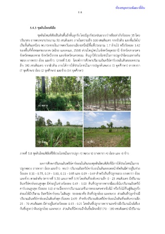 พลวง ยางพารา อ้อย และข้าว (ภาพที่ 5.8) โดยท าการศึกษาปริมาณอินทรีย์คาร์บอนในดินตลอดความ