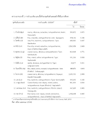 ตารางภาคนวกที่ 1 การจ าแนกดิน และเนื้อที่ของชุดดินตัวแทนหลักที่ใช้ในการศึกษา
