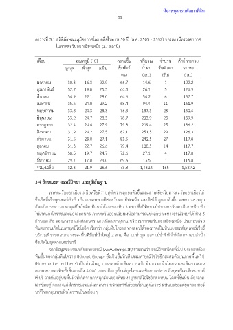 ตารางที่ 3.1 สถิติลักษณะภูมิอากาศโดยเฉลี่ยในคาบ 50 ปี (พ.ศ. 2503 - 2552) ของสถานีตรวจอากาศ
