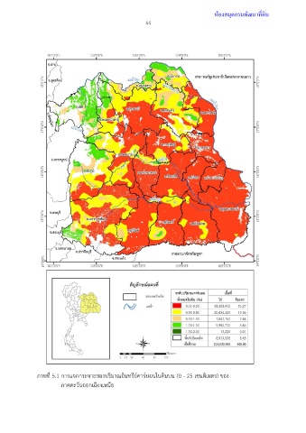 ห้องสมุดกรมพัฒนาที่ดิน 64 ภาพที่ 5.1 การแจกกระจายของปริมาณอินทรีย์คาร์บอนในดินบน (0 - 25 เซนติเมตร) ของ ภาคตะวันออกเฉียงเหนือ