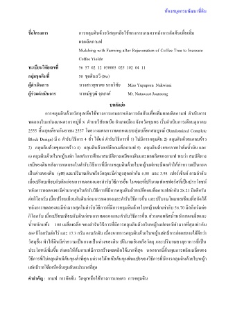 ค าส าคัญ : กาแฟ การตัดต้น วัสดุเหลือใช้ทางการเกษตร การคลุมดิน