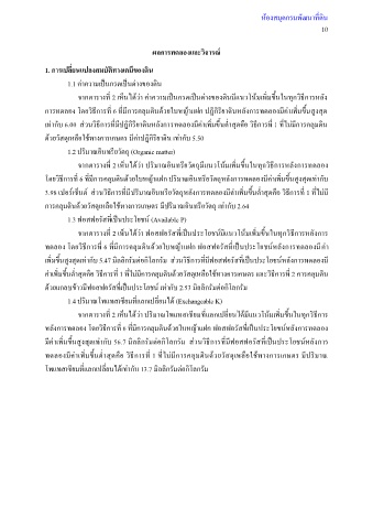 เท่ากับ 6.00 ส่วนวิธีการที่มีปฏิกิริยาดินหลังการทดลองมีค่าเพิ่มขึ้นต่ าสุดคือ วิธีการที่ 1 ที่ไม่มีการคลุมดิน