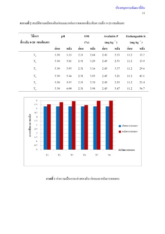 ตารางที่ 2 สมบัติทางเคมีของดินก่อนและหลังการทดลองที่ระดับความลึก 0-20 เซนติเมตร