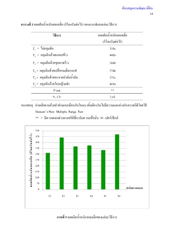 วิธีการ ผลผลิตน้ าหนักสดเฉลี่ย
