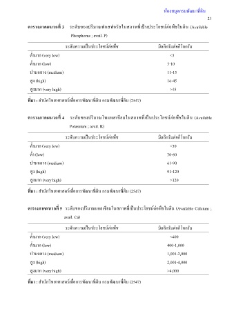 ตารางภาคผนวกที่ 3 ระดับของปริมาณฟอสฟอรัสในสภาพที่เป็นประโยชน์ต่อพืชในดิน (Available
