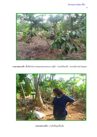 ห้องสมุดกรมพัฒนาที่ดิน 33 ภาพภาคผนวกที่ 1 พื้นที่ด าเนินการทดลองของเกษตรกร หมู่ที่ 8 ต าบลวิสัยเหนือ อ าเภอเมือง จังหวัดชุมพร ภาพภาคผนวกที่ 2 การเก็บข้อมูลเบื้องต้น