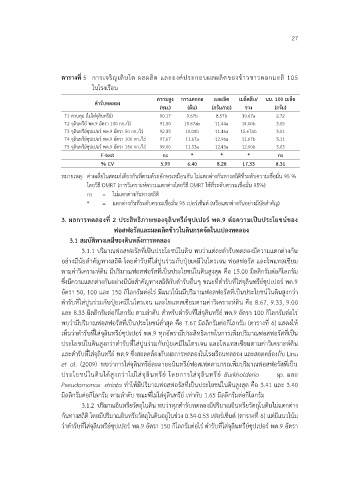 T3 จุลินทรีย์ซุปเปอร์ พด.9 อัตรา 50 กก./ไร่ 92.33 10.00b 11.46a 15.67ab 3.01