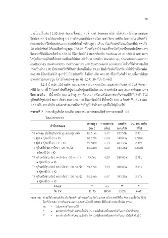 วิเคราะห์ดิน มีน้ําหนัก 100 เมล็ดสูงสุด คือ 2.72 กรัม แต่ไม่แตกต่างกันทางสถิติกับตํารับที่ใส่