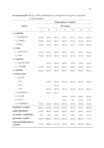 ตารางภาคผนวกที่ 5 ต้นทุน รายได้ และผลตอบแทนทางเศรษฐกิจของการปลูกข้าวขาวดอกมะลิ