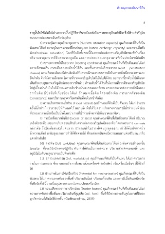 7) สภาวะการหยั่งลึกของราก (Rooting conditions) คุณลักษณะที่ดินที่เป็นตัวแทน ได้แก่
